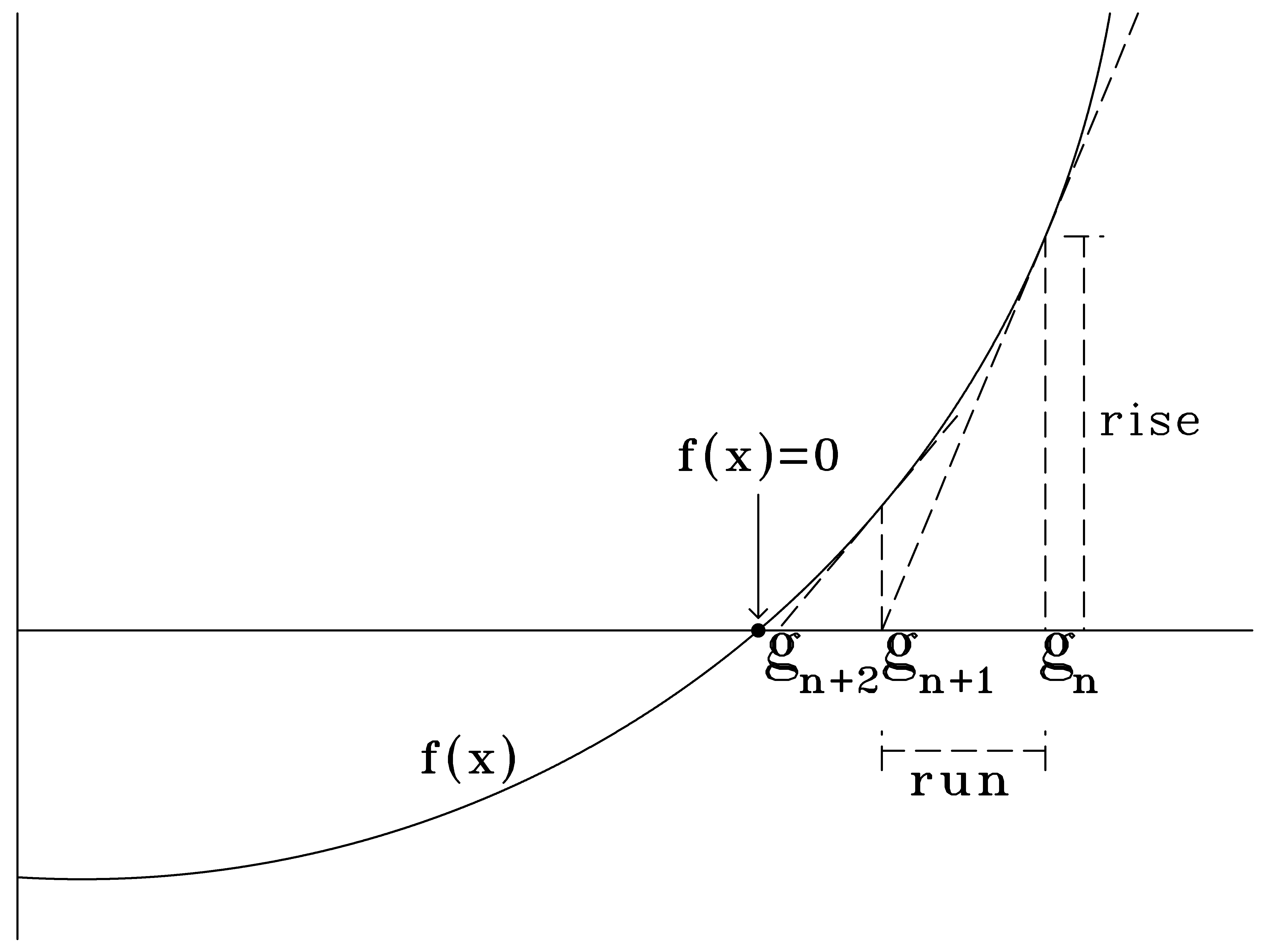 $\qquad g_{n+1} = g_n - \frac{f(g_n)}{f^1(g_n)}$